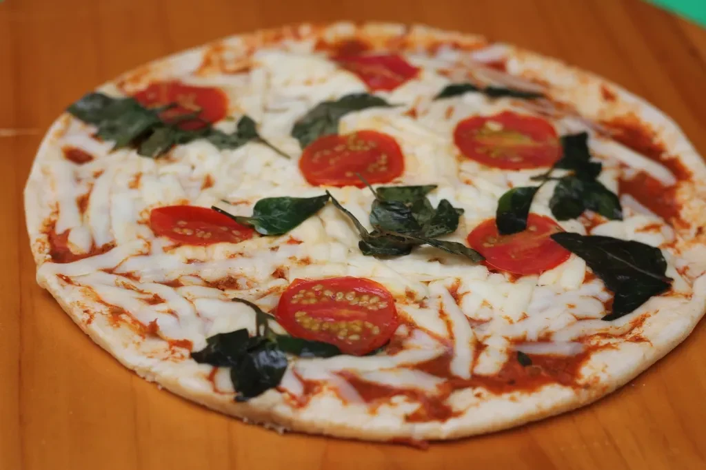 Molho de tomate artesanal, mussarela, manjericão fresco e aquele aroma que domina o ambiente.