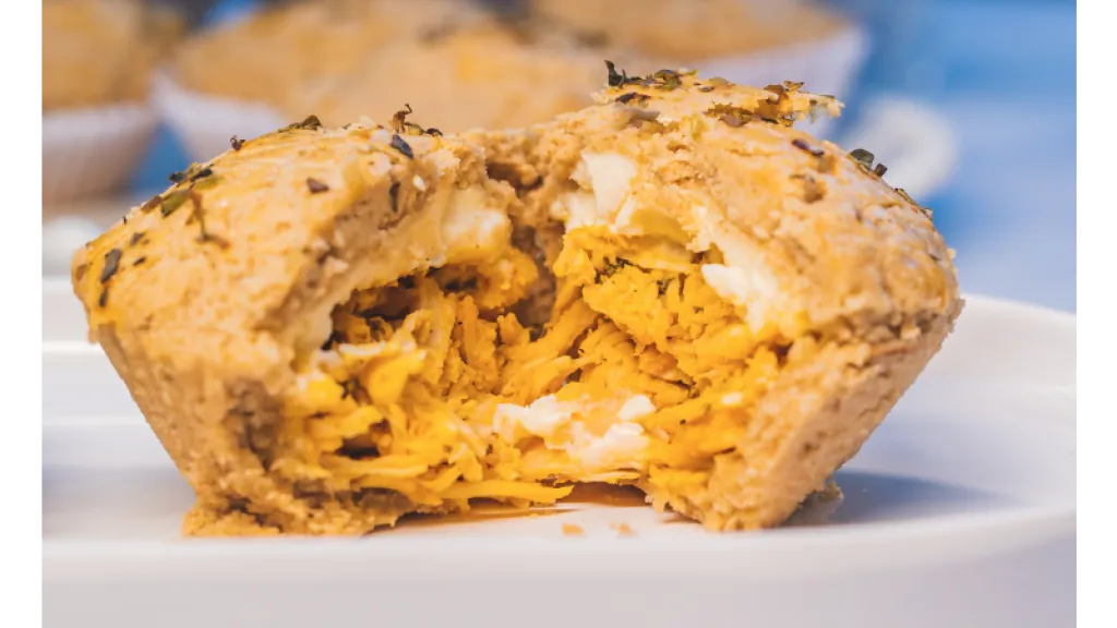 Ingredientes: Massa de empada sem glúten (mix de farinhas, manteiga zero lactose, ovo, polvilho doce, amido de milho, sal e goma xantana), carne de frango e requeijão cremoso zero lactose.