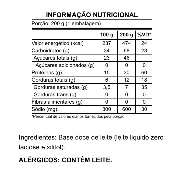 Ingredientes: Leite líquido zero lactose, creme de leite zero lactose e xilitol.