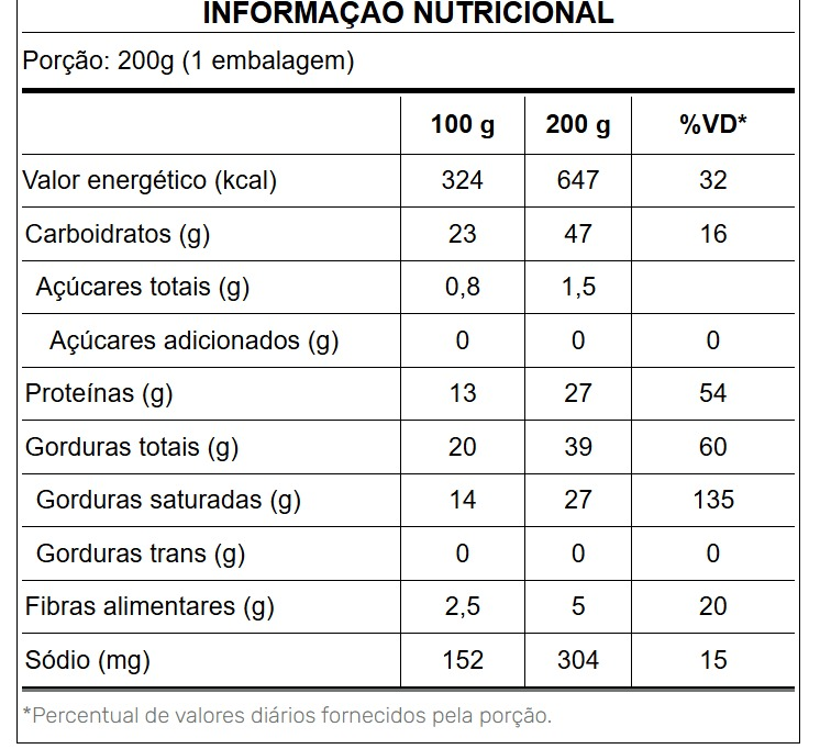 Não contém: lactose, açúcar e glúten.
