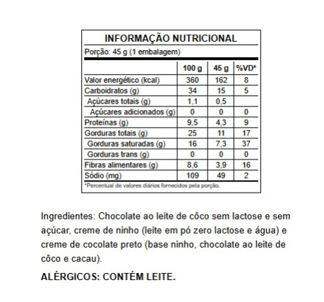 Clique para consultar a tabela nutricional e ingredientes.