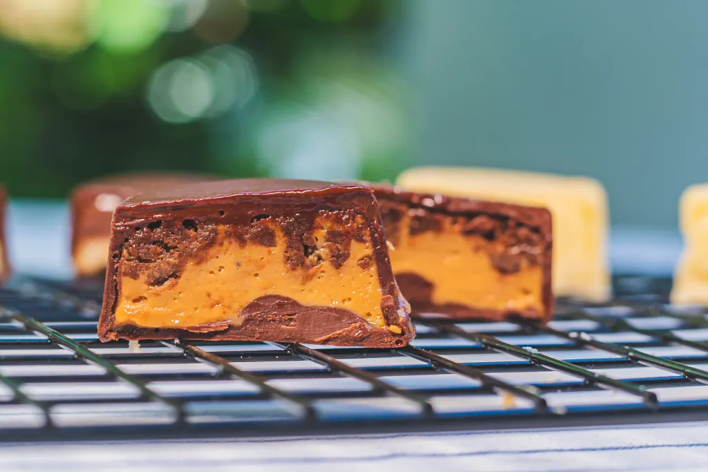 Nosso brownie já é perfeito, junto ao nosso doce de leite artesanal, envolto numa casquinha crocante e deliciosa de chocolate 50%, é o equilíbrio perfeito pra uma sobremesa saudável, gostosa e viciante.
